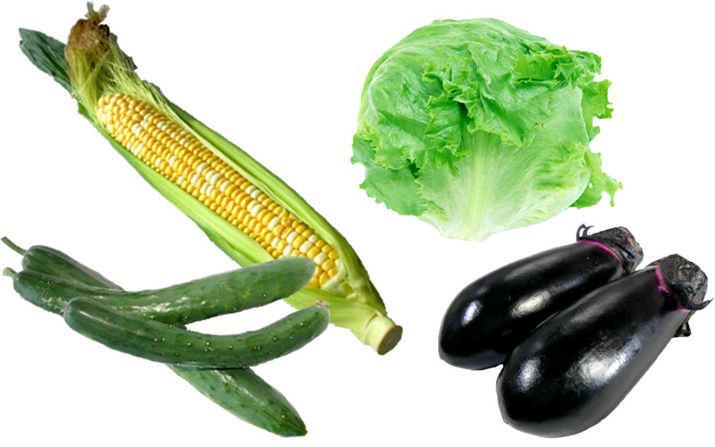品温が下がっている朝に収穫することで、収穫後の呼吸による糖分などの消耗が少なくなり、野菜にみずみずしさが保持されます。この朝採り野菜は、レタス、きゅうり、なす、スイートコーンの4品目からなります。朝に採った野菜は、やや淡くみずみずしい色をしています。これらの野菜には太陽の光が当たると色素の働きで色が濃くなる性質がありますが、早朝は太陽の光に当たる時間が短い為、色が淡くなります。また、昼間に葉で光合成された養分は夜間に移動して果実に取り込まれるため、朝には栄養がぎっしり詰まっています。