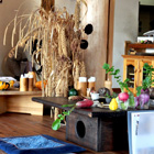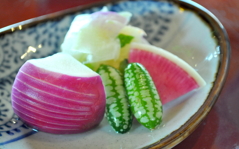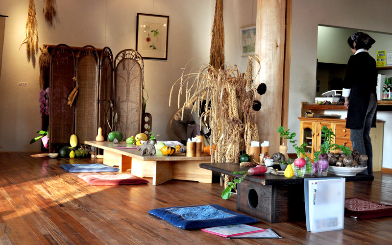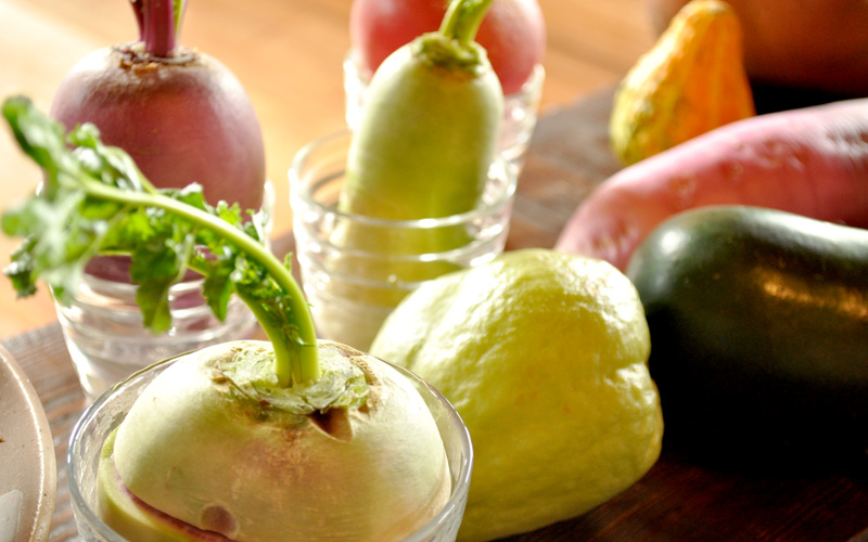 昔ながらの田園風景に囲まれ、穏やかな雰囲気が漂います。大和野菜の他にも、お店の自家菜園で栽培されている野菜も味わうことができます。季節により、メニューが変化しますので、四季を感じつつ、大和野菜を堪能できます。お店は高台にある為、眺めを楽しむこともできます。また、お店の中には至るところに採れたて野菜が並んでおり、店員の方が持ってきて説明をしてくれます。実際にその野菜に触ることもできるので、触覚を通しても野菜を味わうことができます。そしてもう一つこのお店ならではの楽しみがあります。それは、お店のアイドルであるヤギのペーターくんやハイジちゃんと触れ合うことができることです。食事の後に野菜をあげることもできます。時間が流れるのを忘れる程、ゆったりとお食事ができるお店です。このページでは、5000円の「大和野菜フルコース」を主に紹介します。このお店はミシュランで1つ星も獲得されており、大変人気のお店となっています。要予約となっていますが、1ヶ月待ちとなる場合がありますので、ご注意下さい。