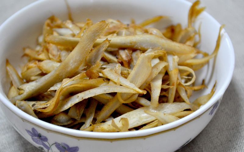 宇陀市の特産品として有名です。金粉をまぶしたように美しく、縁起が良いとの評価を受け、この名が付いたそうです。雲母(キララ)を多く含んだ土壌で栽培される為、ごぼうに付着した雲母がきらきらと光るそうです。肉質がやわらかで、高い芳香が特徴と言われています。大和野菜に認定される前は、「宇陀ごぼう」という名前でしたが、金粉をまぶしたような美しさ、と東京で評価されたことから「宇陀金ごぼう」という名がつきました。その美しさが縁起が良いとされ、正月のおせちに珍重されます。