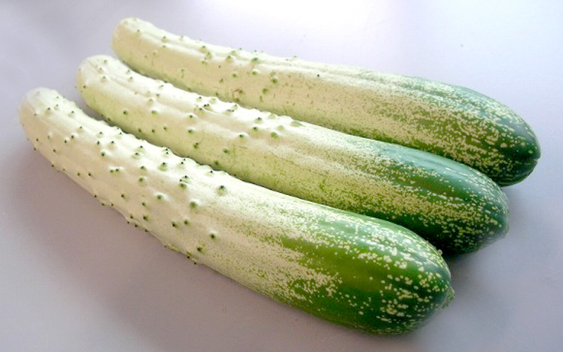 戦後のきゅうりは、白イボ緑色果系が主流となり、皮が硬く漬け物用だった黒イボ半白系品種は姿を消して行きました。それが一部産地で品種改良され、半白きゅうりとして栽培されてきました。名の通り、半分色が白色です。黒イボ半白系品種は、皮が硬いため生食用に適していませんでした。それを生でも食べれるように品種改良され、生まれたのが半白きゅうりです。そのため、ぽりぽりと歯切れも良く、味も良いです。