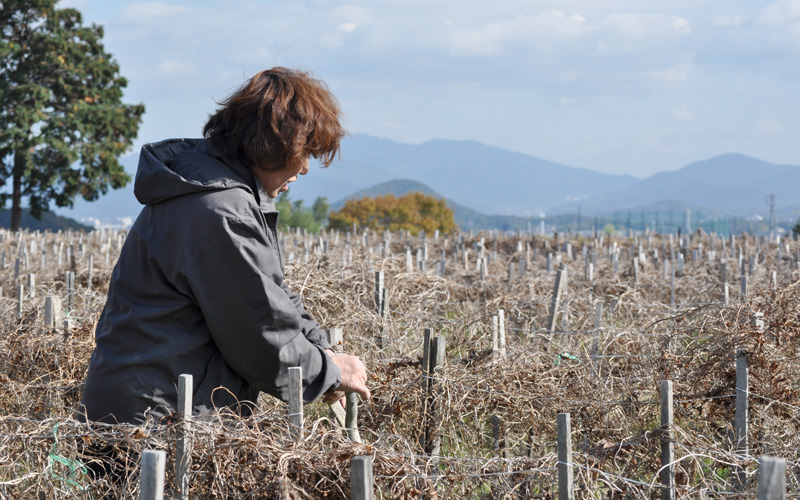 大和いもは、稲を収穫した田んぼを耕した後に苗が植え付けられ、栽培されます。稲の蕪が栄養となり、大和いもを育てる為には必然的に稲作をしなければなりません。田んぼは3,4回にわたって耕します。最近では大和いもを栽培する農家が増加し、直売店でもよく売られるようになった為、西川さんは、直売店に売るのをやめ、葛の粉に加工する会社へ売っているそうです。