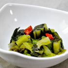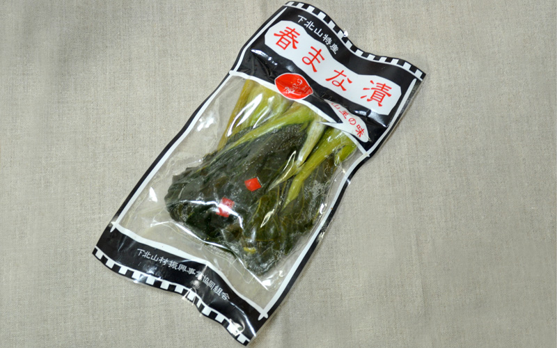 同じまなでも大和まなとは違います。濃い緑色をしており、切れ込みがなく丸みがかった見た目をしています。下北山村という奈良県の南部に位置する村で栽培され、この地域では、奈良の郷土料理であるめはり寿司に使用されます。地域の野菜としてお土産物として商品開発が行われている数少ない大和野菜です。漬け物などに利用され、下北村を表す野菜となっています。肉厚で甘味があり、親しみやすい野菜となっています。